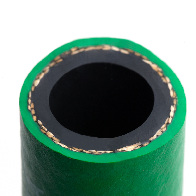 增強層:單層高強度合成纖維編織層,編制角度使得軟管具備高耐曲撓性,并對接頭有抱緊度,不必再使用卡箍緊固。