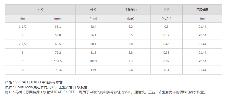 技術(shù)參數(shù)內(nèi)層:丁腈合成橡膠RMAA級(jí)(高耐油)增強(qiáng)層:多層纏繞合成纖維,帶金屬絲螺旋外層:Chemivic○R合成橡膠(環(huán)裹壓印)工作溫度:-20°F到180°F(-29°C到82°C)