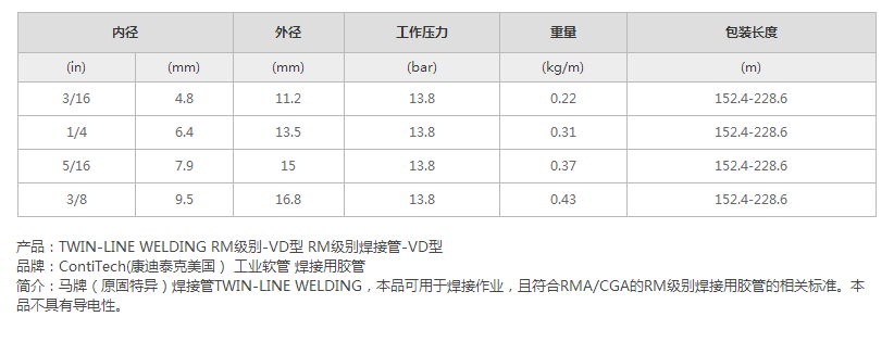 用途:本品可用于焊接作業,且符合RMA/CGA的RM級別焊接用膠管。本品不具有導電性