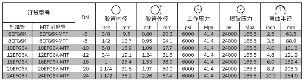 增強層:4-6 層高強度鋼絲交替纏繞 (-6 至 -16 為 4 層,-20 及以上規格為 6 層 )